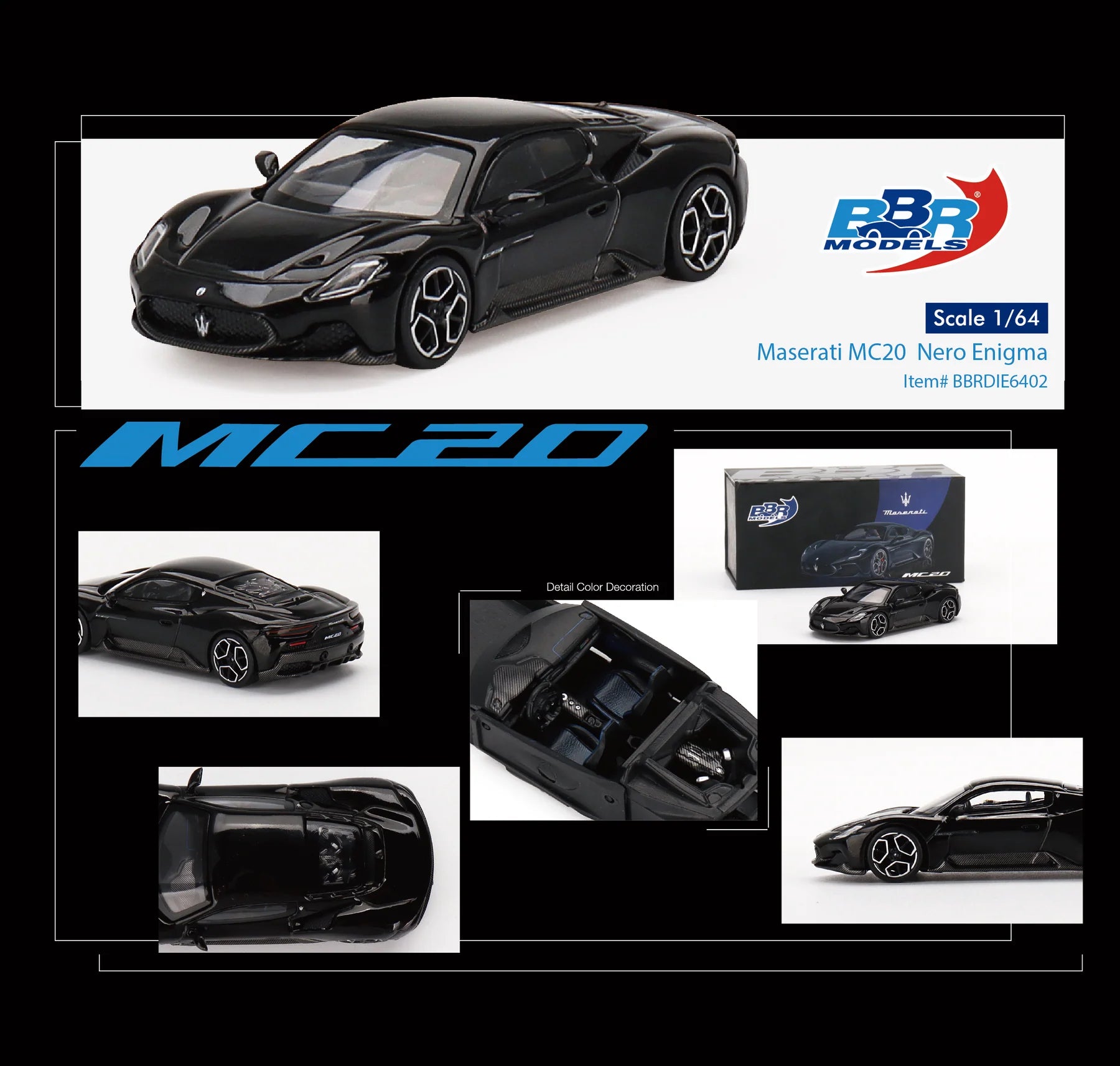Maserati MC20 Nero Enigma - BBR Models - Scala 1/64 - BBRDIE6402