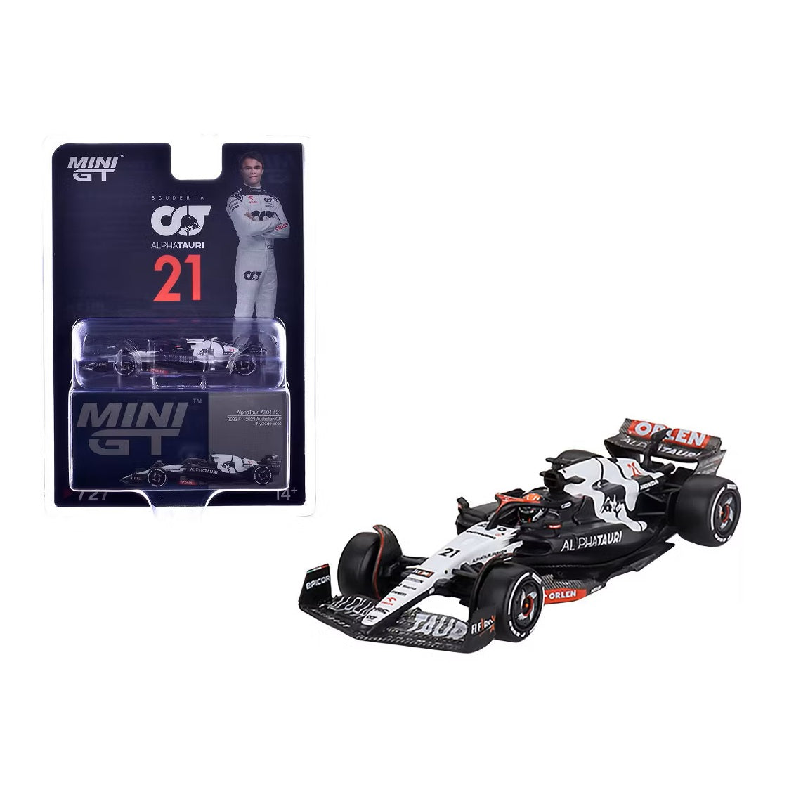 AlphaTauri AT04 #21 Nyck de Vries 2023 F1 2023 Australian GP - Mini GT - Scala 1/64 MGT00727-MJ Blister Packaging